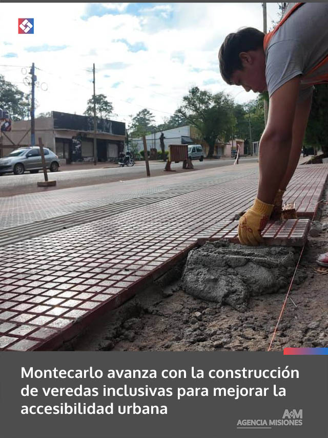 AGENCIA MISIONES.UNO | La Municipalidad de Montecarlo impulsa obras de infraestructura orientadas a garantizar la accesibilidad y la seguridad en la vía pública, mediante la construcción de veredas inclusivas pensadas para todos los vecinos.